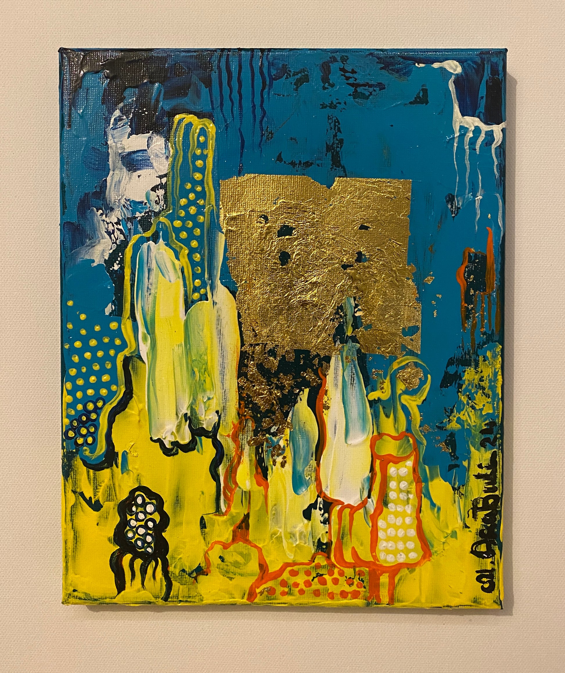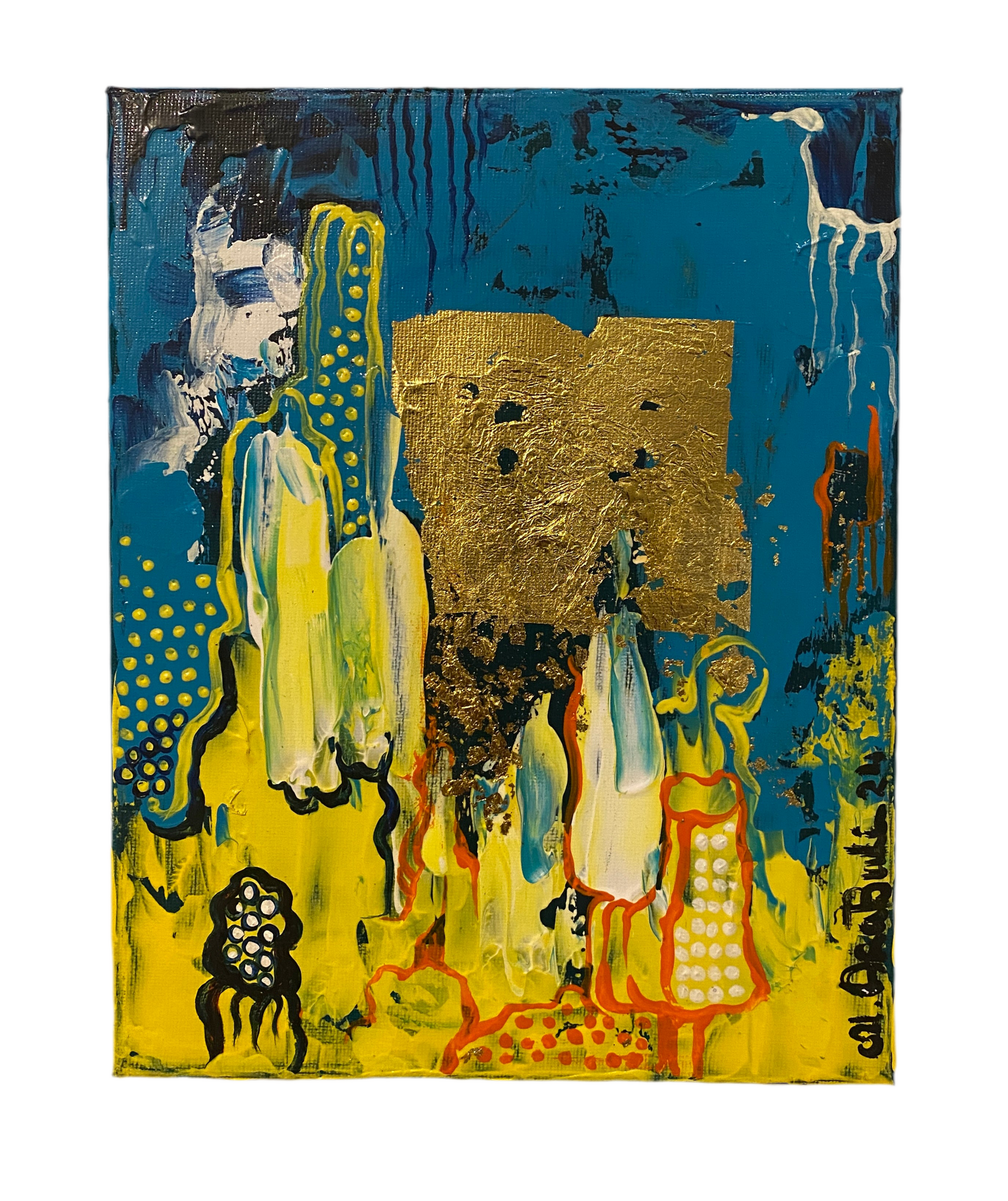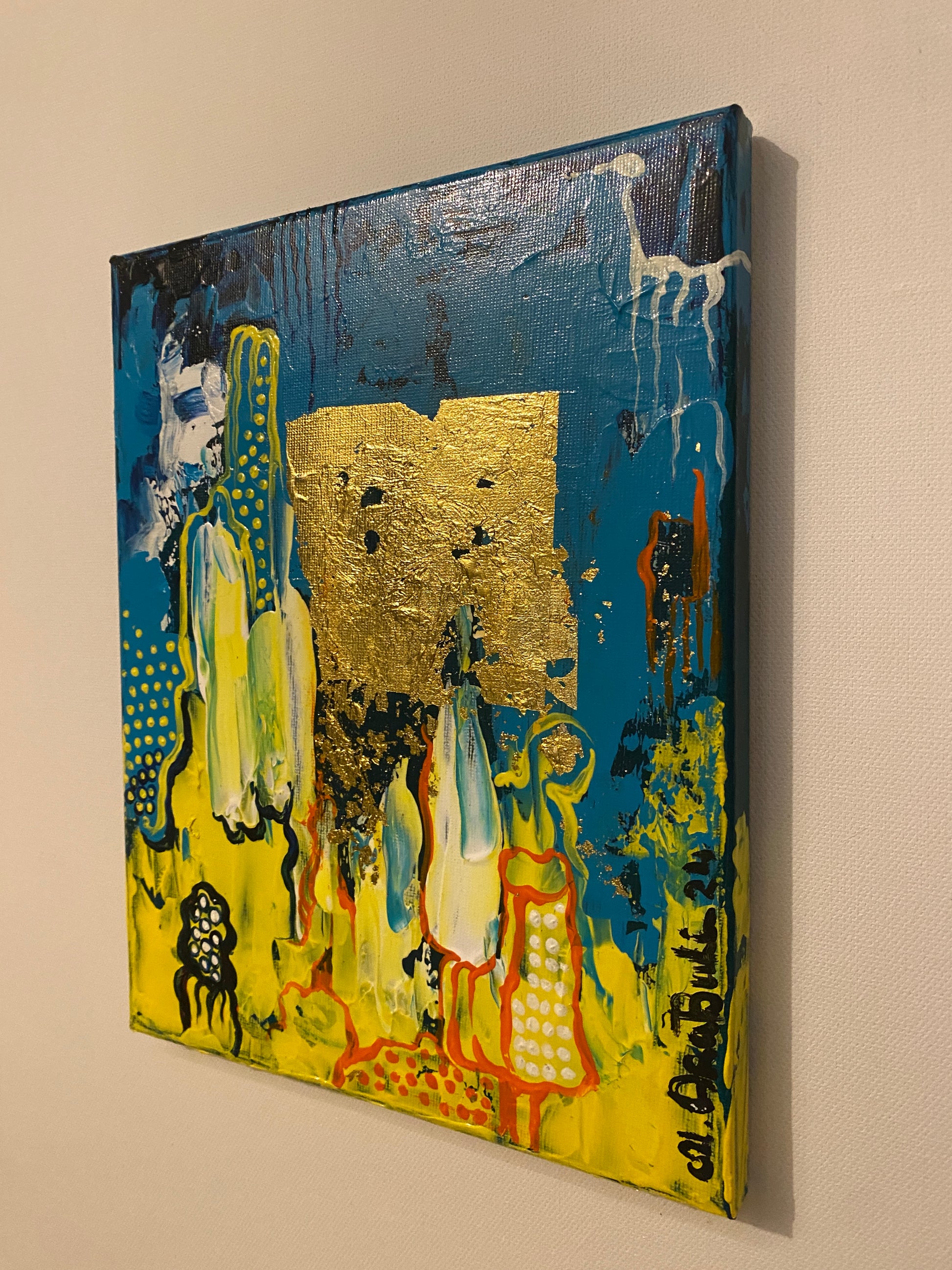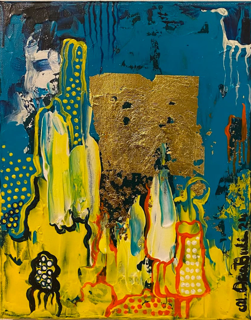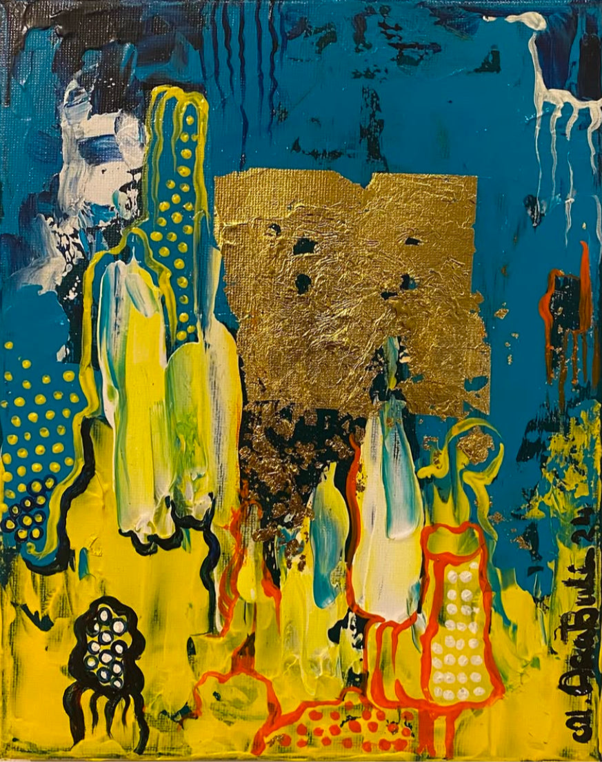 Acrylic on Canvas Mix media (Abstract with Golden Leaves) Size: 7X10 inch Production Date: 2024 Artist: Maia Arabuli
