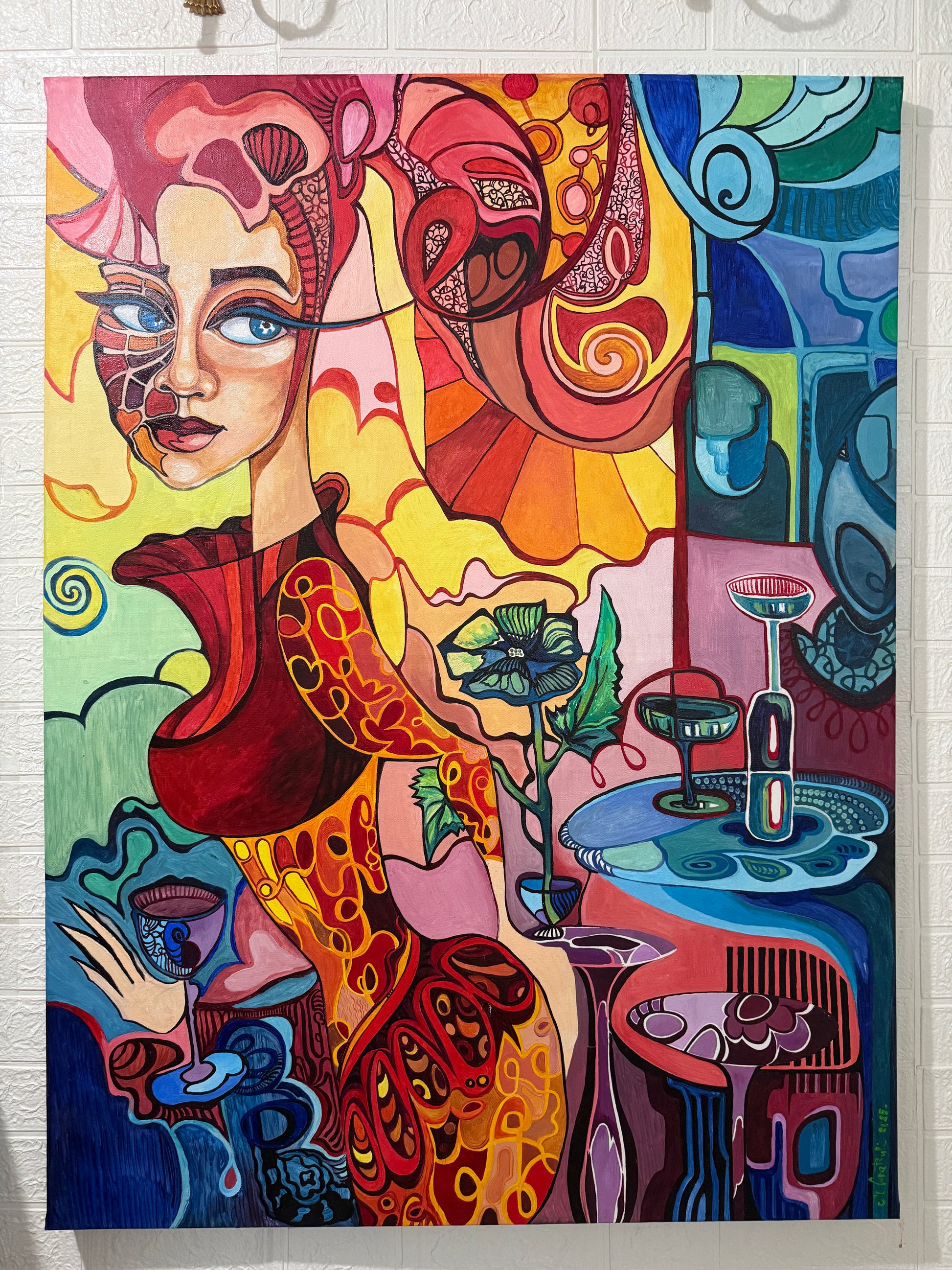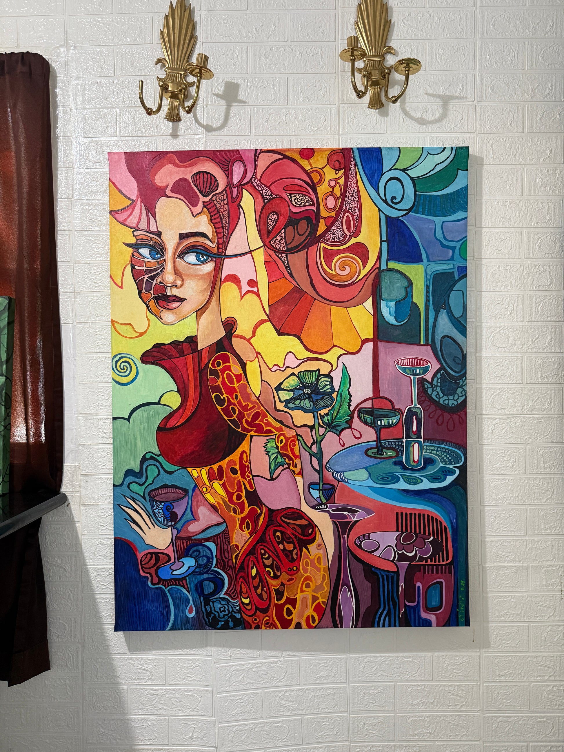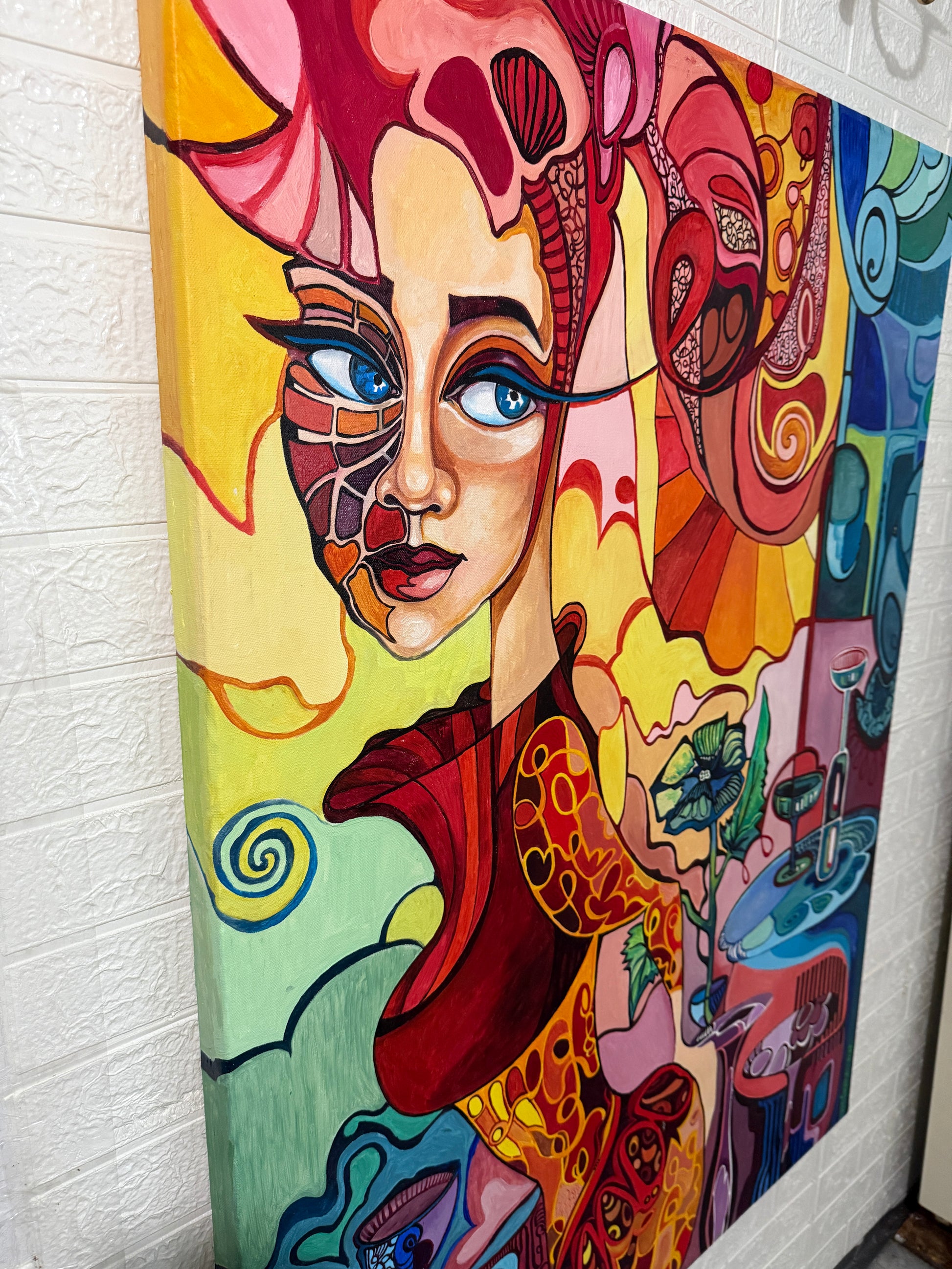This original artwork is a celebration of feminine strength, dreams, and emotional complexity—perfect for collectors who appreciate deeply expressive and layered visual storytelling.